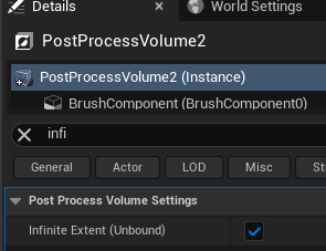 - Post Process Volume을 클릭하여 디테일 패널에서 Infinite Extent를 활성화한다.