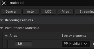 - 또한 Post Process Volume에서 Material을 추가한다.