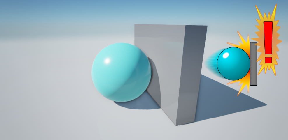 - 두 액터가 충돌하였고 Hit이벤트가 발생하였으며 물리적 반응(블럭)으로 인해 관통하지 못하는 모습이다.