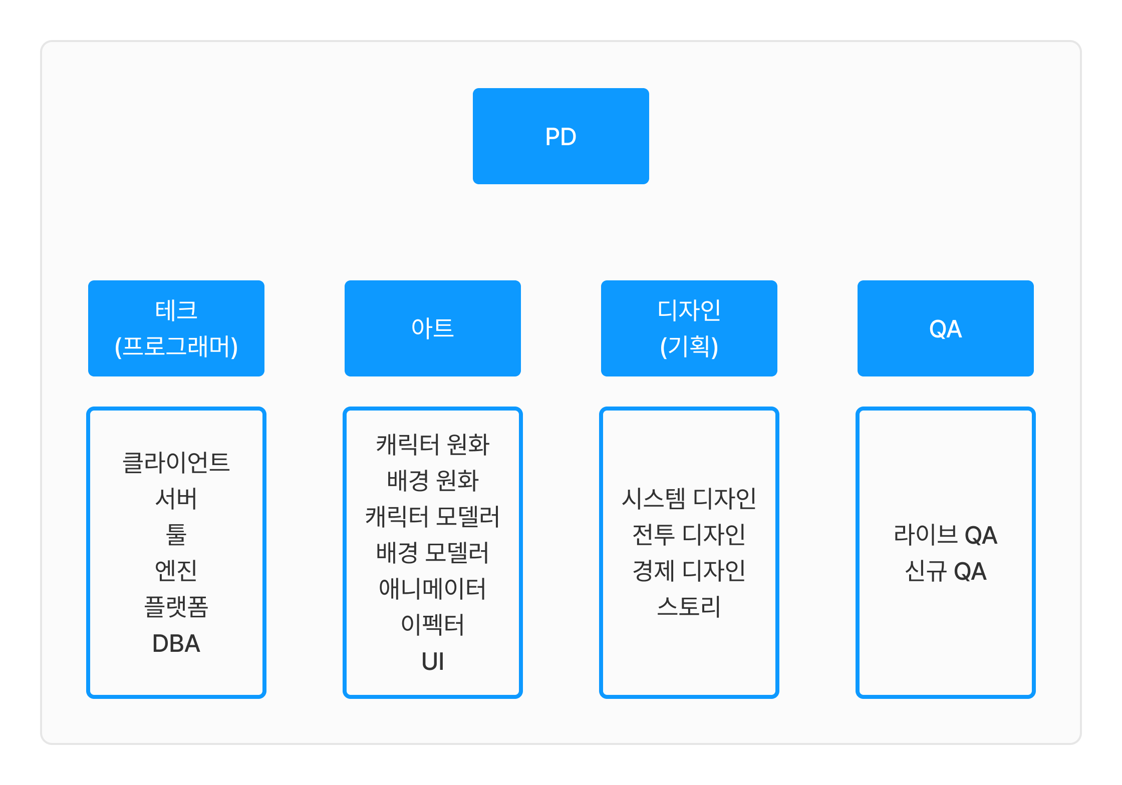 - PD 또는 각 팀의 팀장들이 모여 게임 기획서를 제작한다.